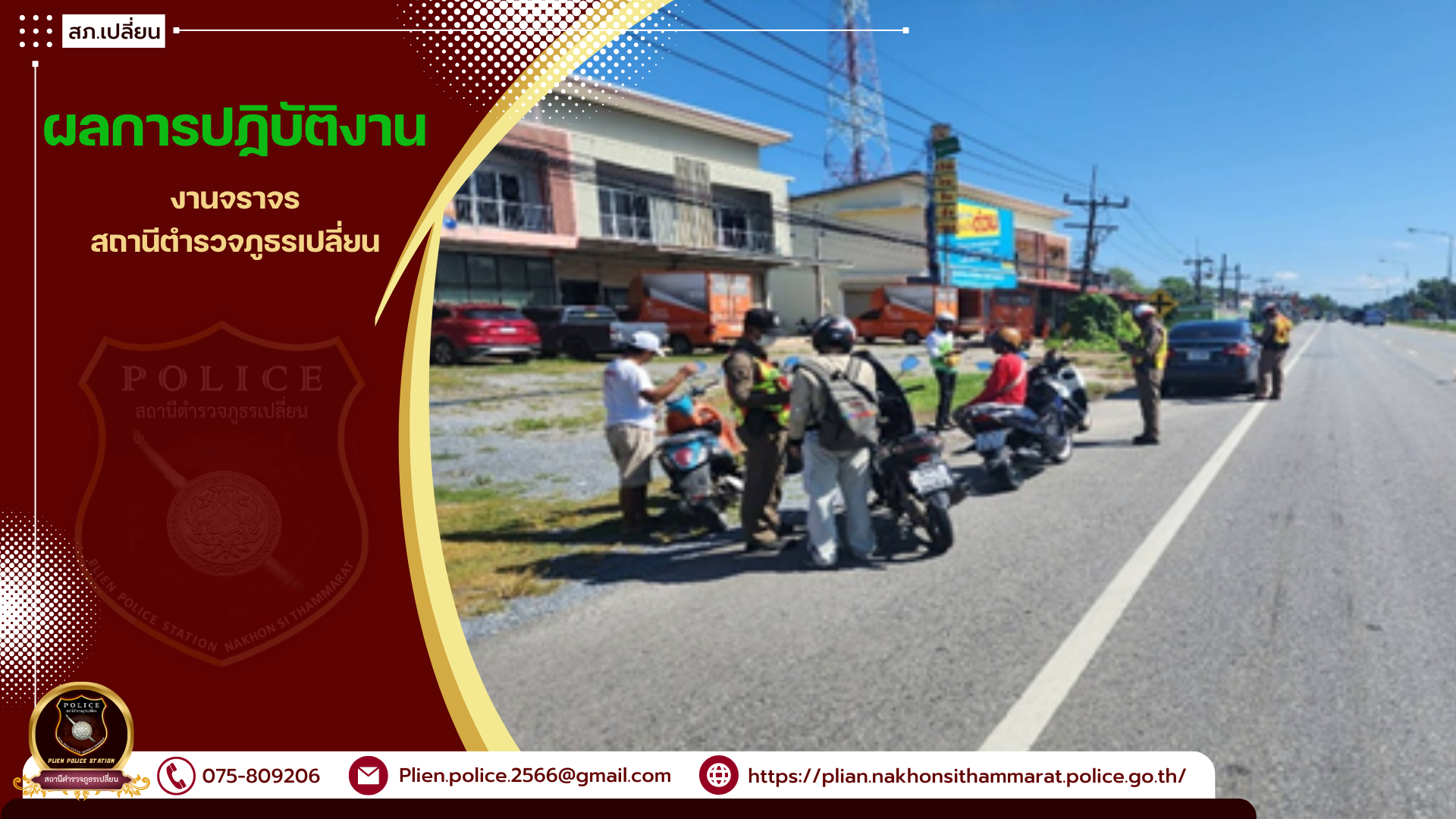 ➡️ สถานีตำรวจภูธรเปลี่ยน พร้อมเจ้าหน้าที่ตำรวจ ตั้งจุดตรวจกวดขันวินัยจราจร จับกุม 10 ข้อหาหลัก