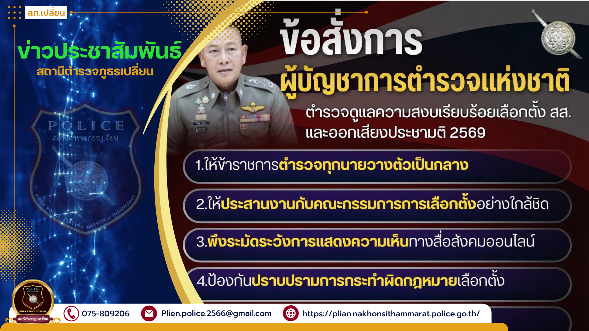 ➡️ สถานีตำรวจภูธรเปลี่ยน รักษาความสงบเรียบร้อย ป้องกันเหตุ การปราศัยหาเสียงเลือกตั้ง นายก อบต.