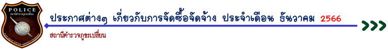<<< รายงานการประกาศต่างๆ เกี่ยวกับการจัดซื้อจัดจ้าง ประจำเดือน ธ.ค.66 (คลิกข้างล่างเพื่ออ่านข้อมูล) >>>
