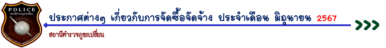 <<< รายงานการประกาศต่างๆ เกี่ยวกับการจัดซื้อจัดจ้าง ประจำเดือน มิ.ย.67 (คลิกข้างล่างเพื่ออ่านข้อมูล) >>>