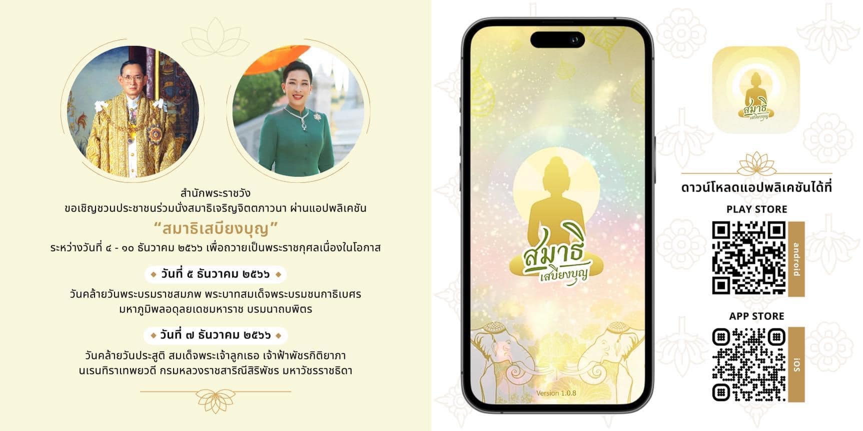 ผ่านแอปพลิเคชัน “สมาธิเสบียงบุญ” บันทึกเวลาการทำสมาธิเจริญจิตตภาวนา ตั้งแต่วันที่ ๔ ธันวาคม ๒๕๖๖ เวลา ๐๘.๐๐ น. ถึง วันที่ ๑๐ ธันวาคม ๒๕๖๖ เวลา ๐๘.๐๐ น.
