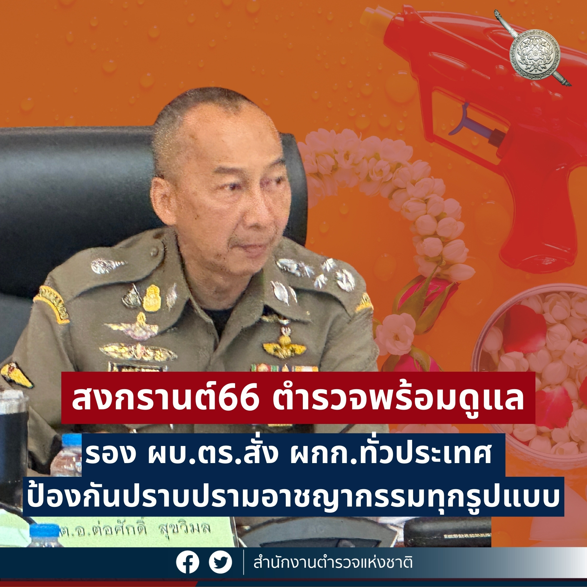 ตามที่ พล.ต.อ.ดำรงศักดิ์ กิตติประภัสร์ ผู้บัญชาการตำรวจแห่งชาติ มีหนังสือด่วนที่สุด ลงวันที่ 27 มีนาคม 2566 ไปยังข้าราชการตำรวจทุกหน่วยทั่วประเทศ กำหนดมาตรการในการดูแลความปลอดภัย และอำนวยความสะดวกประชาชนในช่วงเทศกาลสงกรานต์ ประกอบไปด้วย 4 มาตรการ ได้แก่