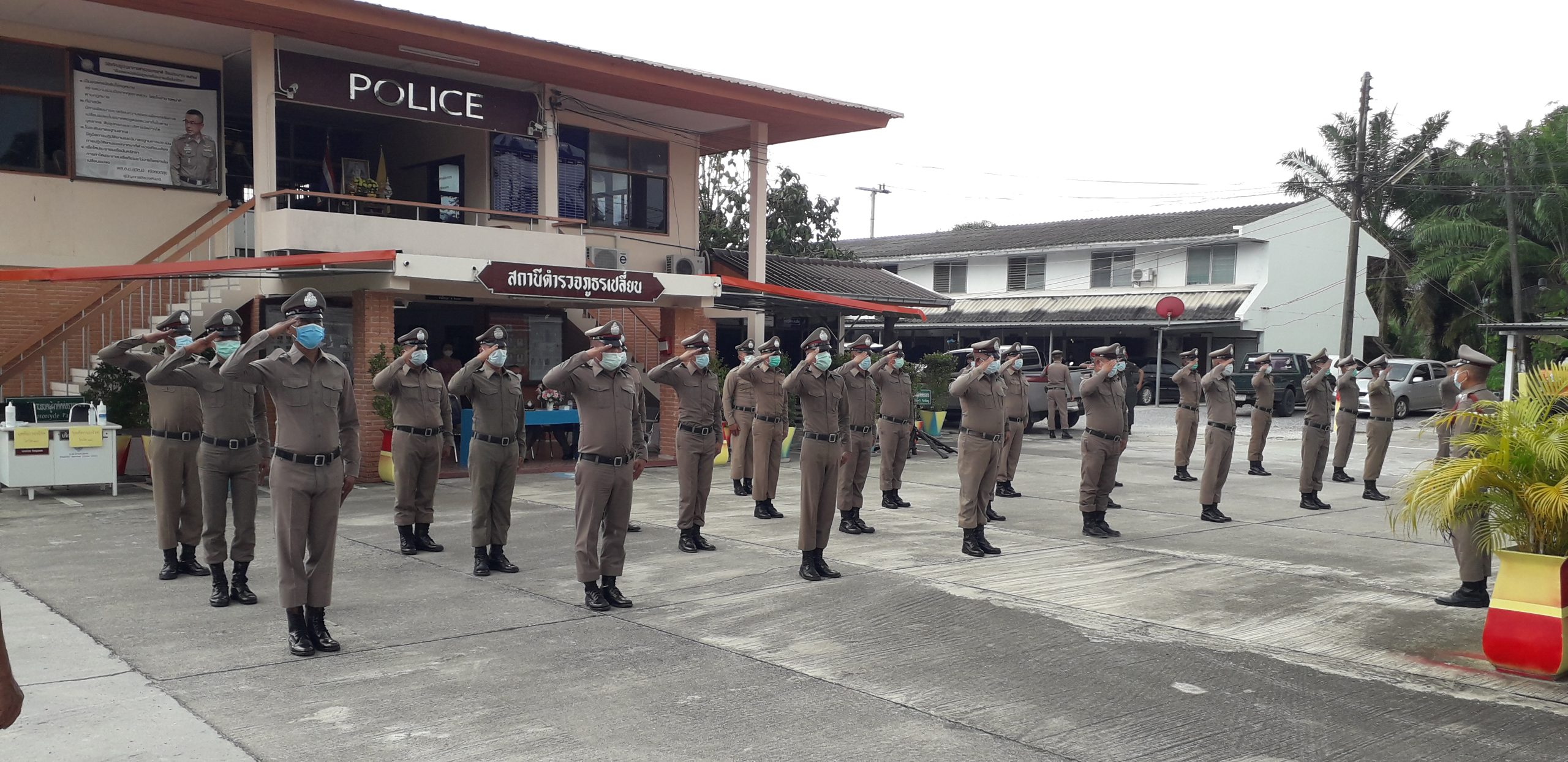 ข้าราชการตำรวจ สภ.เปลี่ยน ลงแถวซักซ้อมการฝึกทบทวน ภายในหน่วย