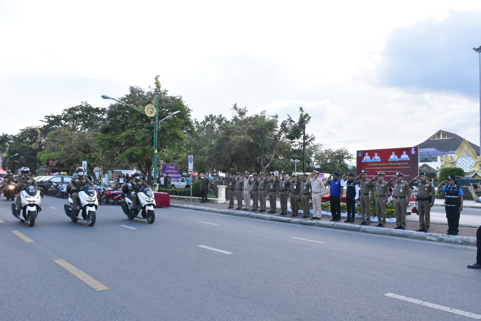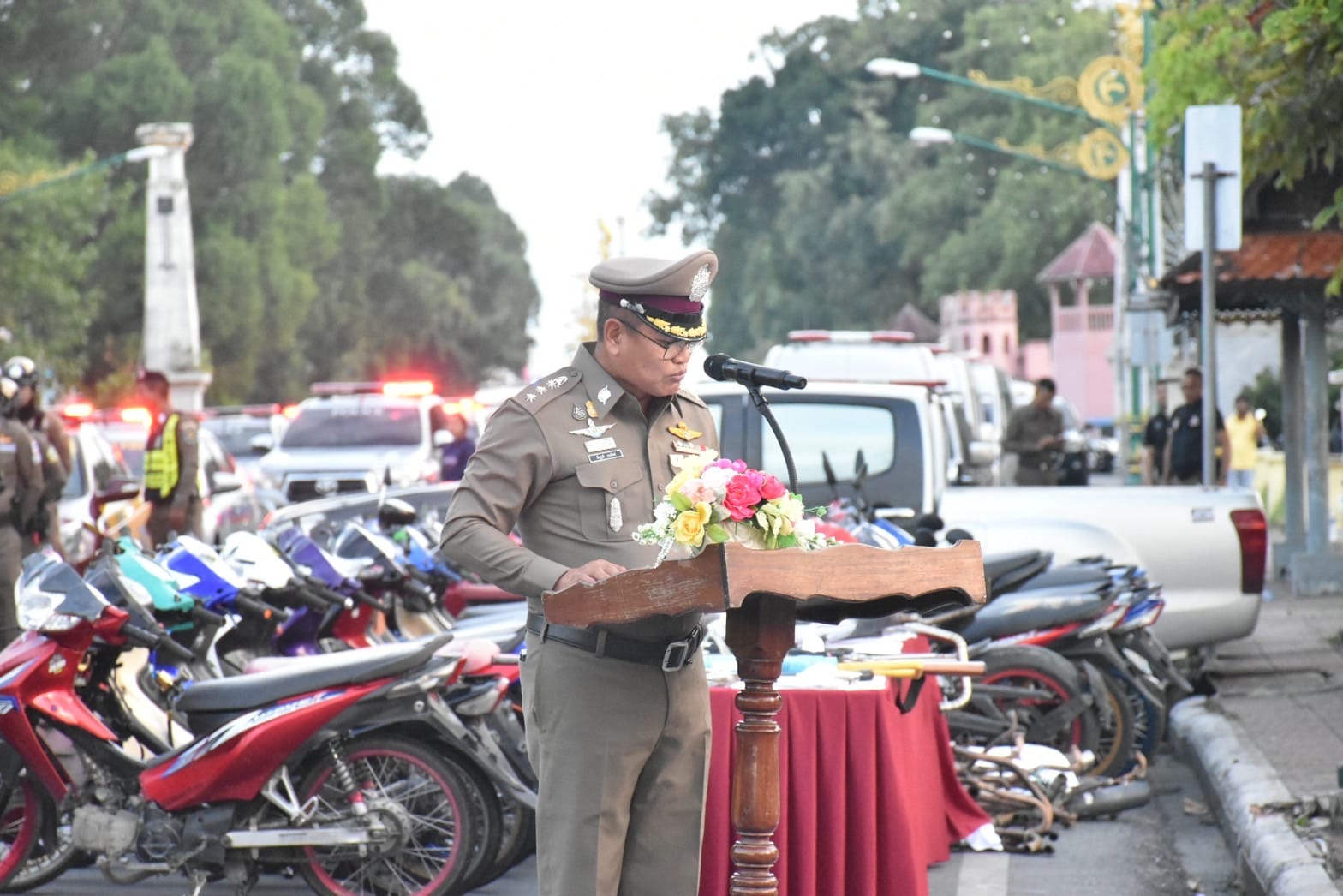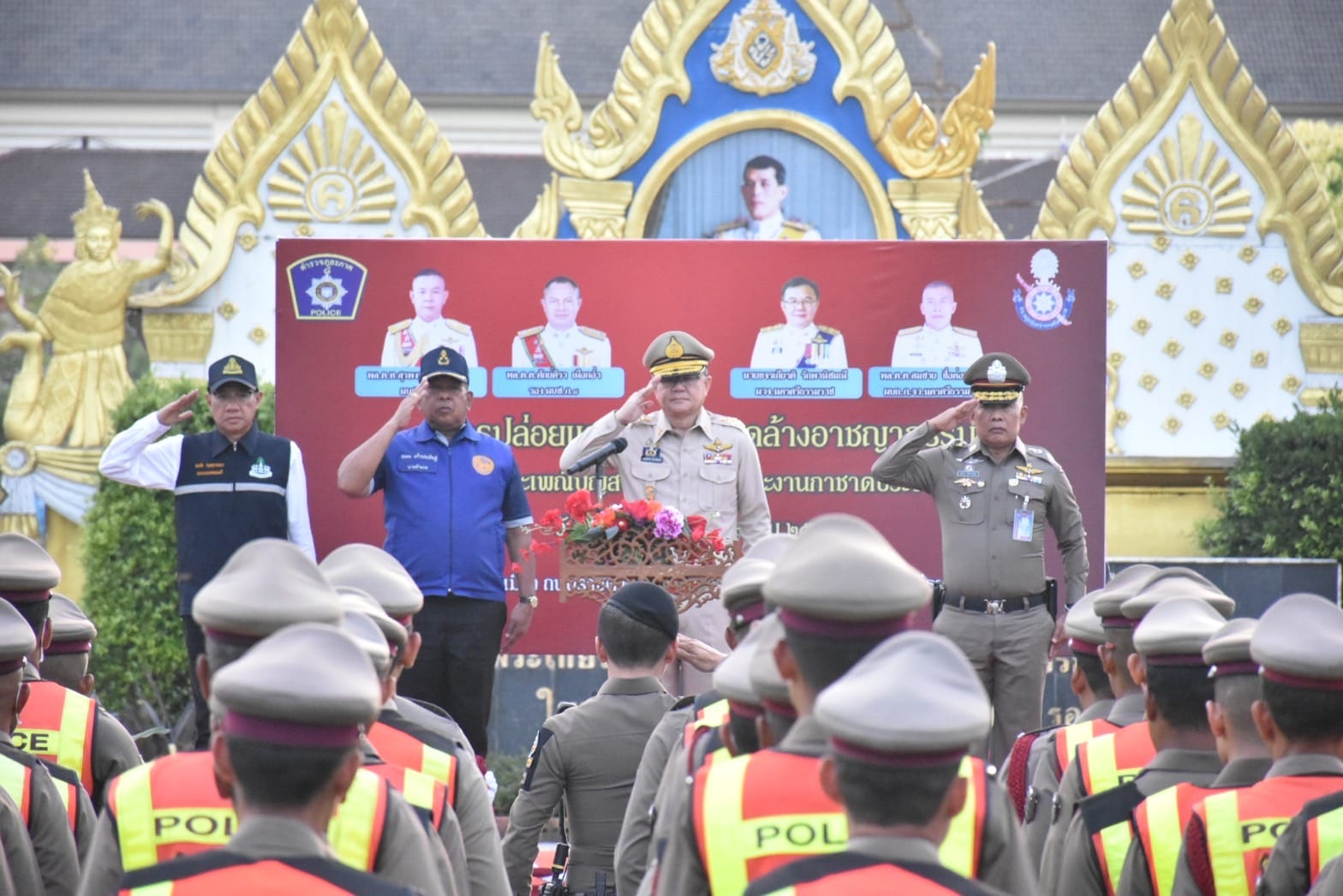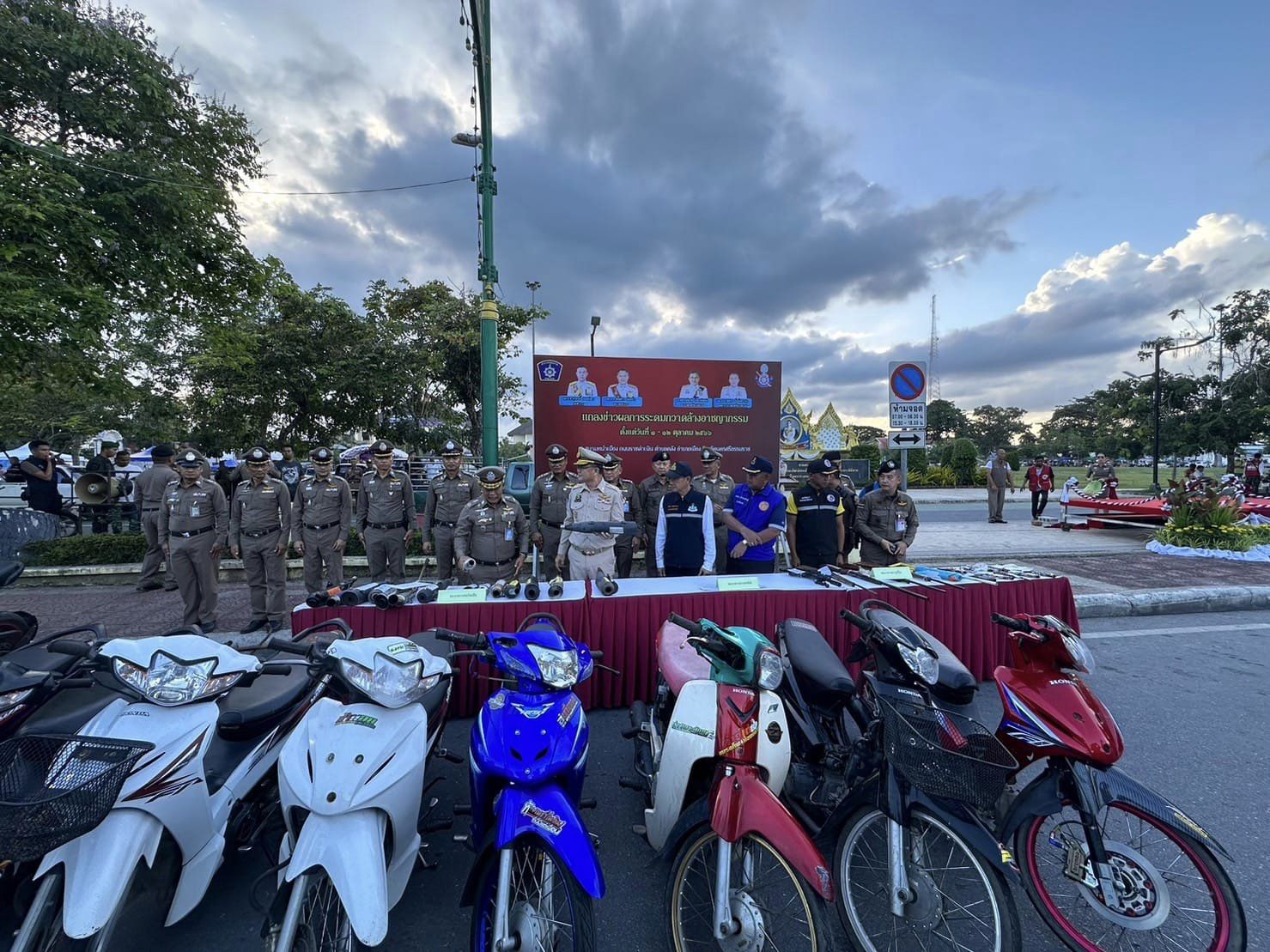 ในพิธีปล่อยแถวระดมกวาดล้างจับกุมอาวุธปืน อาวุธสงคราม เครื่องกระสุนปืน วัตถุระเบิด และการระดมกวาดล้างอาชญากรรมช่วงงานประเพณีบุญสารทเดือนสิบและงานกาชาด ประจำปี 2566 ห้วงวันที่ 11 – 13 ต.ค.66 และแถลงข่าวผลการจับกุม