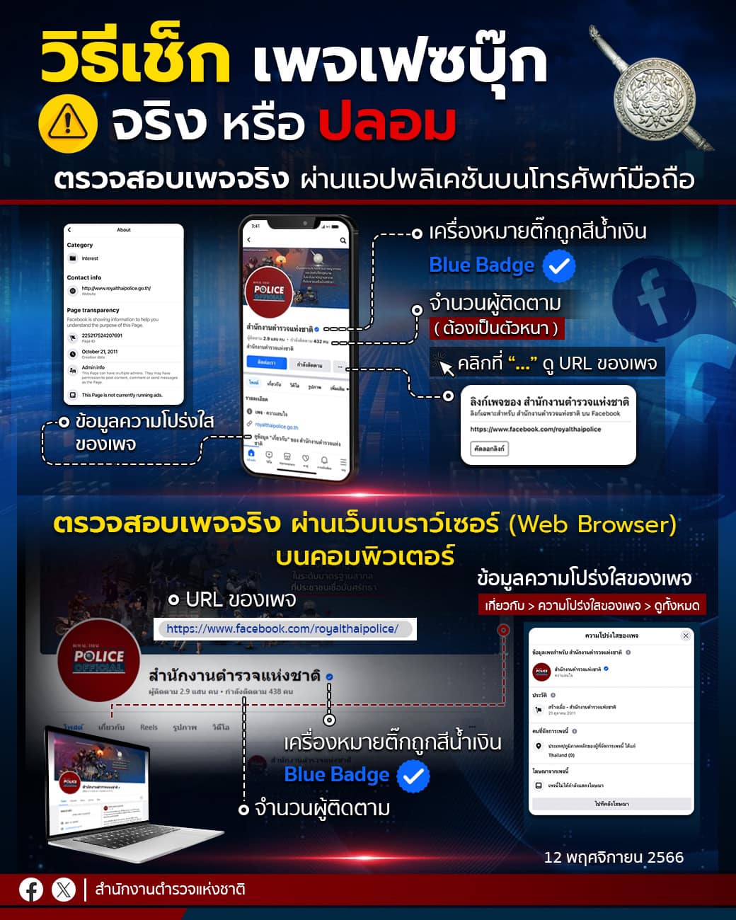 สำนักงานตำรวจแห่งชาติแนะนำเทคนิคการดูเพจเฟซบุ๊กจริง หรือ ปลอม วิธีสังเกตเพจจริง พบเพจปลอมหลอกขายของออนไลน์ สร้างยอดติดตามเกินจริง