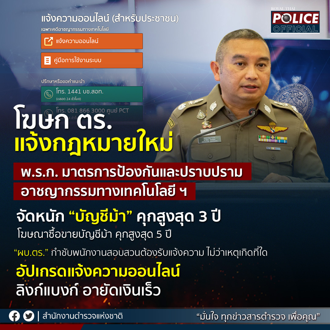 โฆษก ตร. แจ้งกฎหมายใหม่ พ.ร.ก.อาชญากรรมทางเทคโนโลยีฯ
