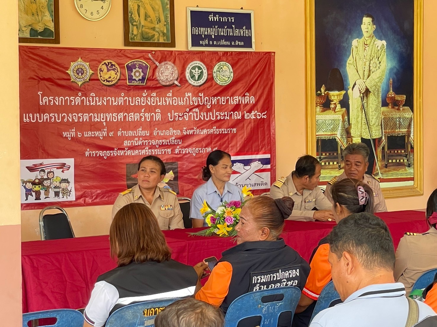 สถานีตำรวจภูธรเปลี่ยนโดย พ.ต.อ.ประยุทธ สิมาธรรม ผกก.สภ.เปลี่ยนและข้าราชการตำรวจ สภ.เปลี่ยน ร่วมกับข้าราชการอำเภอสิชล เจ้าหน้าที่สาธารณสุขอนามัยบ้านท่าหินและประชาชนในพื้นที่ ร่วมกันทำพิธีเปิดโครงการชุมชนยั่งยืนหมู่บ้านปลอดยาเสพติด ประจำปี พ.ศ.2568 ที่หอประชุมโรงเรียนบ้านใสเหรียง ม.6 ต.เปลี่ยน อ.สิชล จว.นศ และร่วมประชาสัมพันธ์การมีส่วนร่วมของประชาชนในการป้องกันอาชญากรรมระดับสถานีตำรวจ