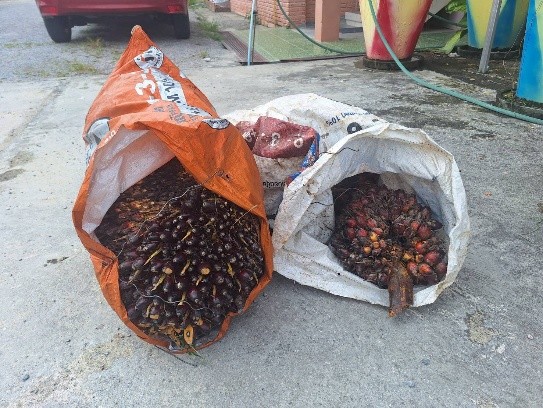 – รายละเอียด : ได้รับแจ้งจากผู้ใหญ่บ้าน ม.5 ต.เปลี่ยน อ.สิชล จ.นครศรีธรรมราช ว่าผู้ดูแลสวนปาล์มเข้าไปถึง พบเห็นชาย 2 คน สวมเสื้อยืดแขนยาวสีดำ ชายอีกคนใส่เสื้อยืดแขนยาวสีน้ำเงิน กำลังตัดปาล์มน้ำมัน จึงแอบซุ่มดูแล้วจึงรีบแจ้งผู้ใหญ่บ้านพร้อมประสานจนท.ตร. เมื่อไปถึงที่เกิดเหตุพบชายสองคนดังกล่าว เมื่อผู้ต้องหาพบเห็นเจ้าหน้าที่ตำรวจจึงรีบโยนของกลางทิ้งข้างถนน แต่เจ้าหน้าที่ได้ควบคุมตัวผู้ต้องหาพร้อมของกลางไว้ได้ จึงนำตัวส่งพนักงานสอบสวนต่อไป