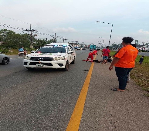 – รายละเอียด : พนักงานสอบสวนได้รับแจ้งว่ามีรถจักรยานยนต์ล้มเอง ที่บริเวณสี่แยกหิน หมู่10 ต.เปลี่ยน อ.สิชล จ.นครศรีธรรมราช จึงเดินทางไปตรวจสอบที่เกิดเหตุ พบนายพีรพล มากชุม อายุ 25 ปี เป็นผู้ขับขี่รถจักยานยนต์ หมายเลขทะเบียน 1กพ 3050 นครศรีธรรมราช ยี่ห้อ ฮอนด้า รุ่น เวฟ110ไอ สีขาว-ดำ ได้รับบาดเจ็บ นอนอยู่ริมถนนใกล้ที่เกิดเหตุ ไม่พบคู่กรณี จึงแจ้งรถพยาบาลมานำตัวส่งโรงพยาบาลสิชลต่อไป