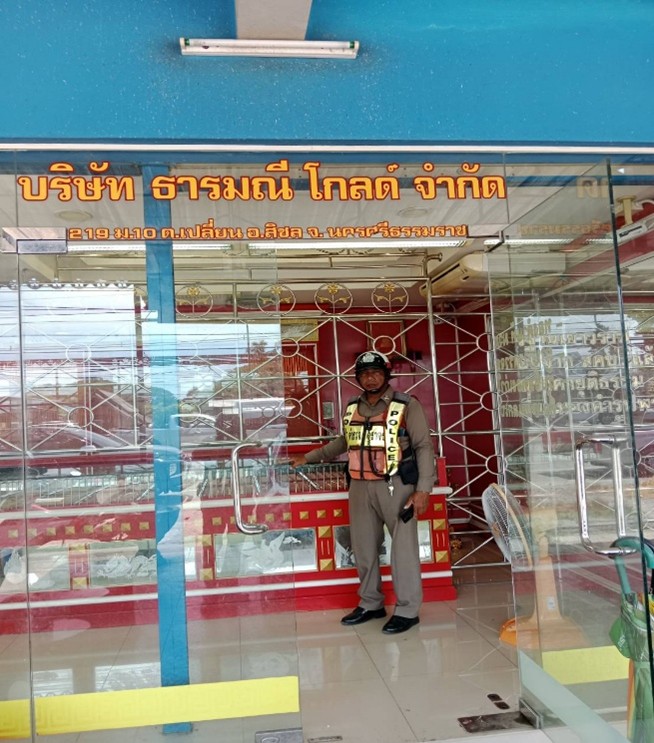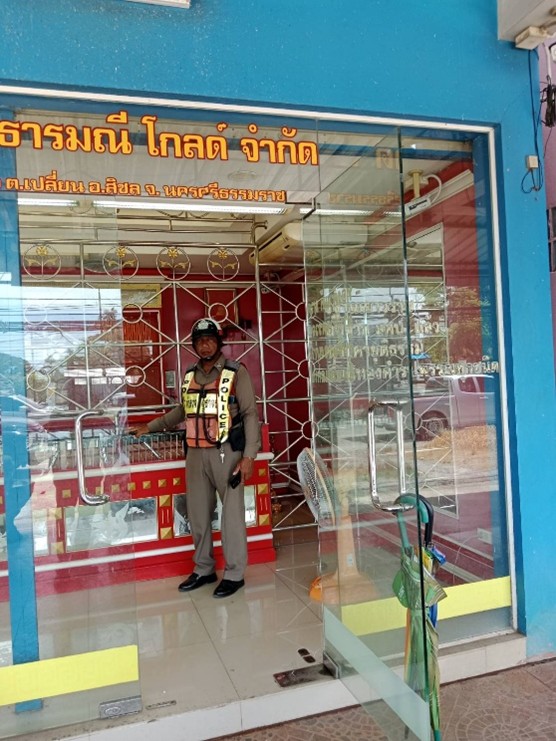 ➡️ สถานีตำรวจภูธรเปลี่ยน ออกตรวจเยี่ยมประชาชน ดูแลรักษาความปลอดภัย แก่ประชาชนที่มาใช้บริการร้านทอง ในพื้นที่รับผิดชอบ บริเวณสี่แยกบ้านท่าหิน ถนนสาย401 (สุราษฎร์ธานี - นครศรีธรรมราช)