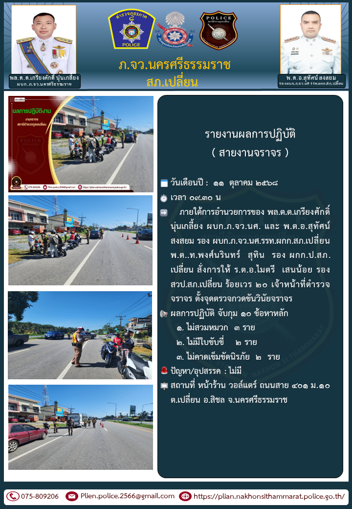 <<< ผลการปฏิบัติงาน สายงานจราจร >>>