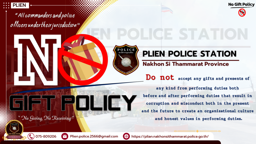 <<< ประกาศเจตนารมณ์ที่จะไม่รับของขวัญและของกำนัลทุกชนิดจากการปฏิบัติหน้าที่ >>>